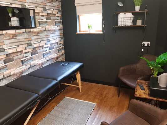 The unit features a treatment room, as well as a connected studio containing a selection of fitness equipment.